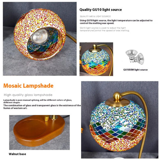 Candle Warmer Lamp Turkish Style Mosaic Multicolor Glass Christmas Gift with Mosaic Aromatherapy Candle Holder for Decoration