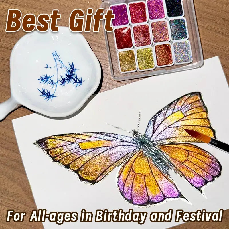 12-Color Laser Solid Watercolor Paint Set for Drawing, Calligraphy,Flower Wrapping,Dyeing,Ideal for Artists, Adults in Festival
