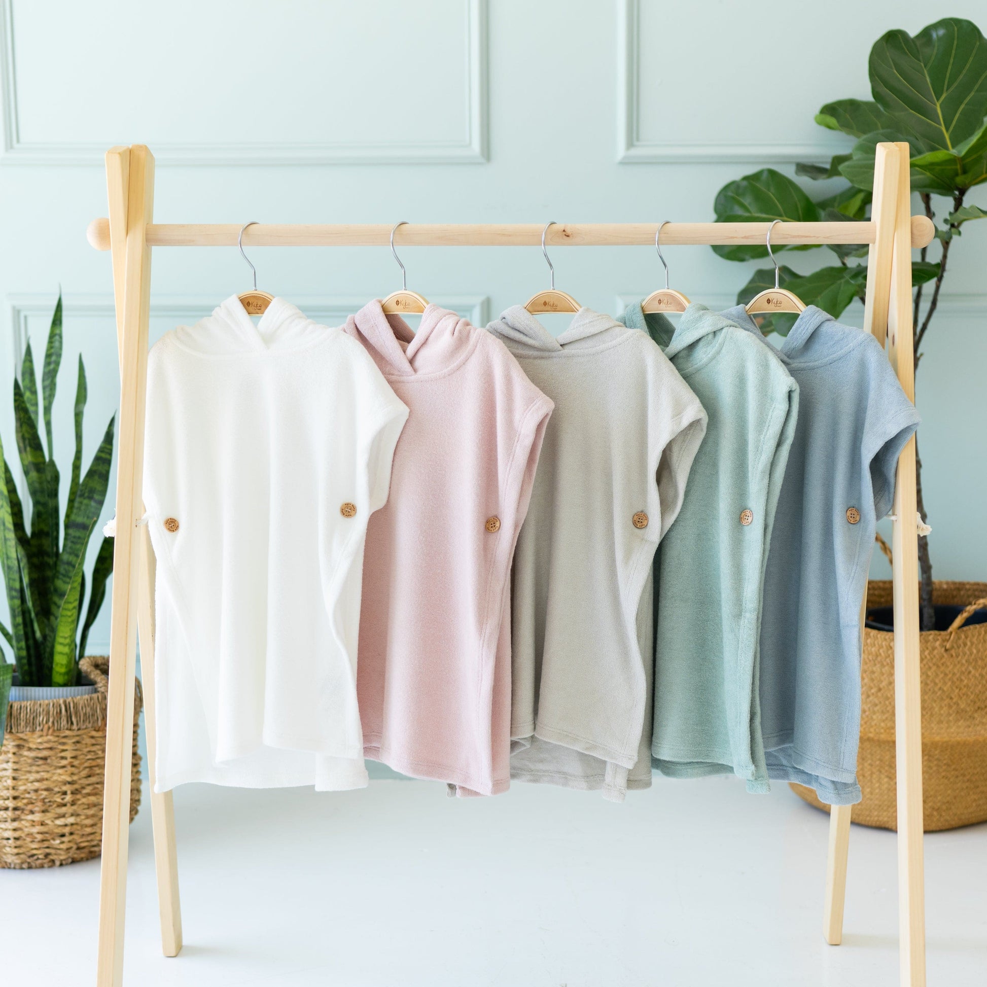 This super soft hooded poncho keeps your little one covered and warm after splashing around in the pool or at the beach. Ultra absorbent bamboo terry cuts drying time in half, while the plush material is extra cosy for lounging around after play time.