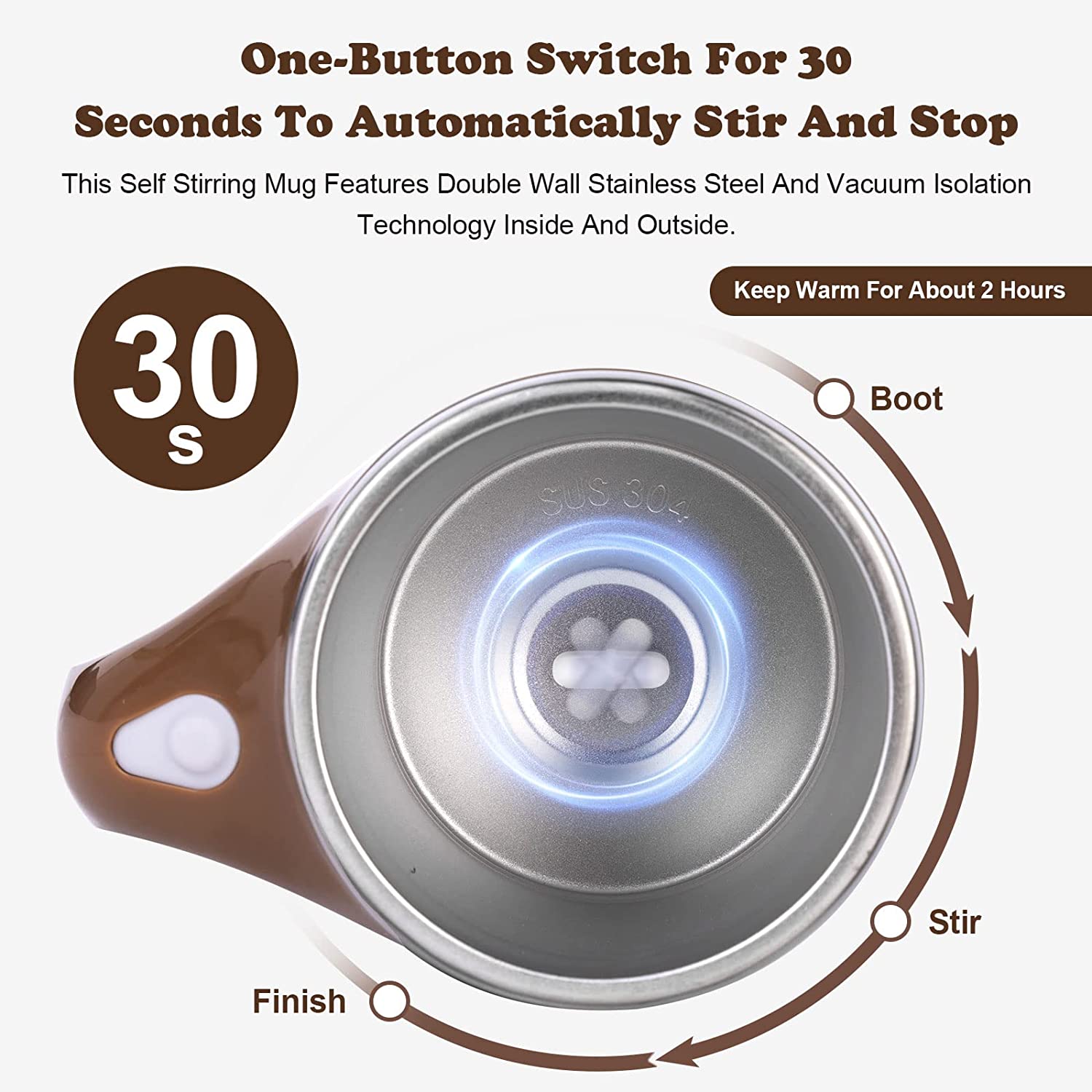 Using smart black technology, just remove the magnetic beads from the lid and place them at the bottom of the cup. Press again to stop stirring.Featured with advanced self-stirring tech, press the automatic stirring button on the cup, and the propeller at the bottom will rotate to mix the solute and solvent particles into a lovely foam. If you press the button once again, it will stop stirring. The operation is very simple.