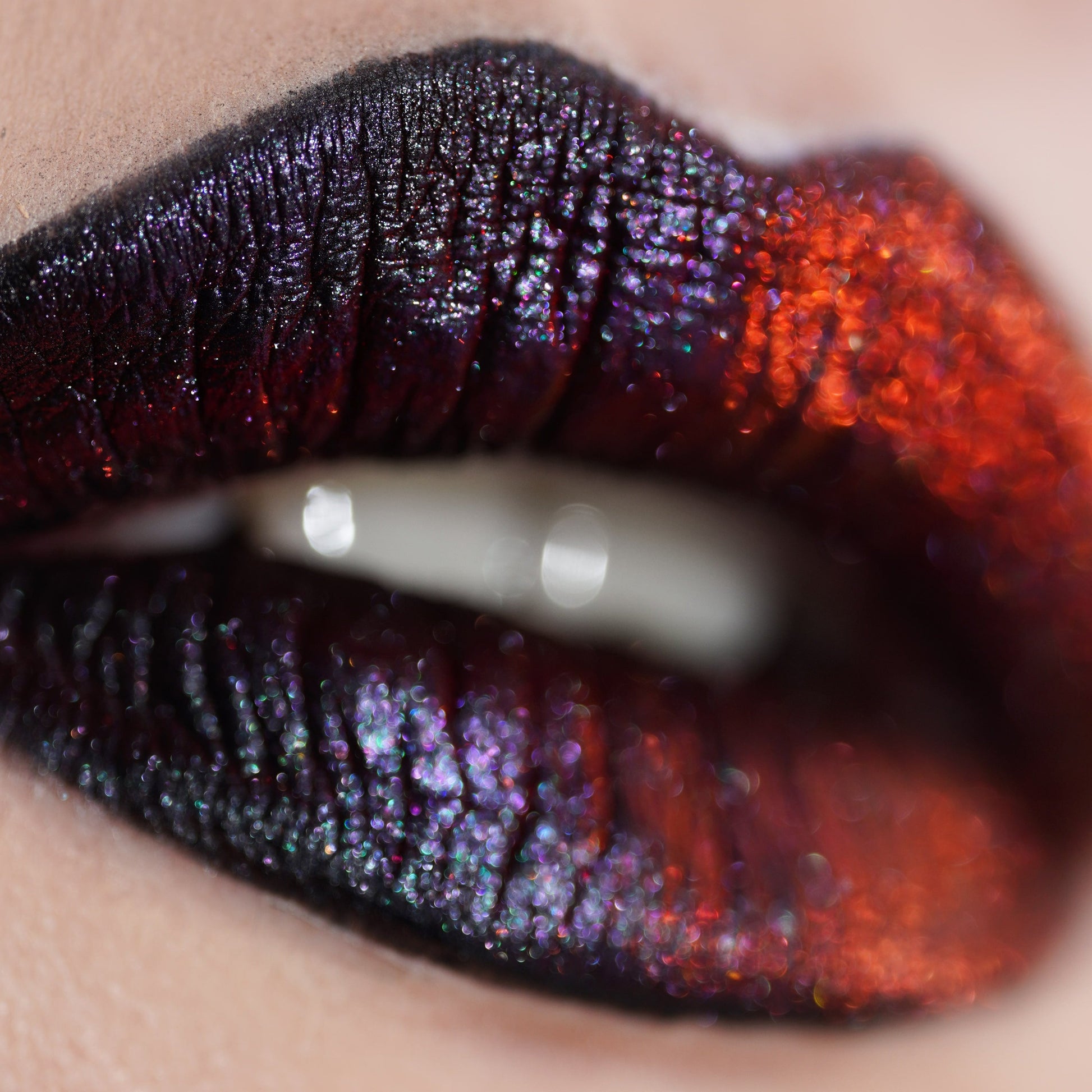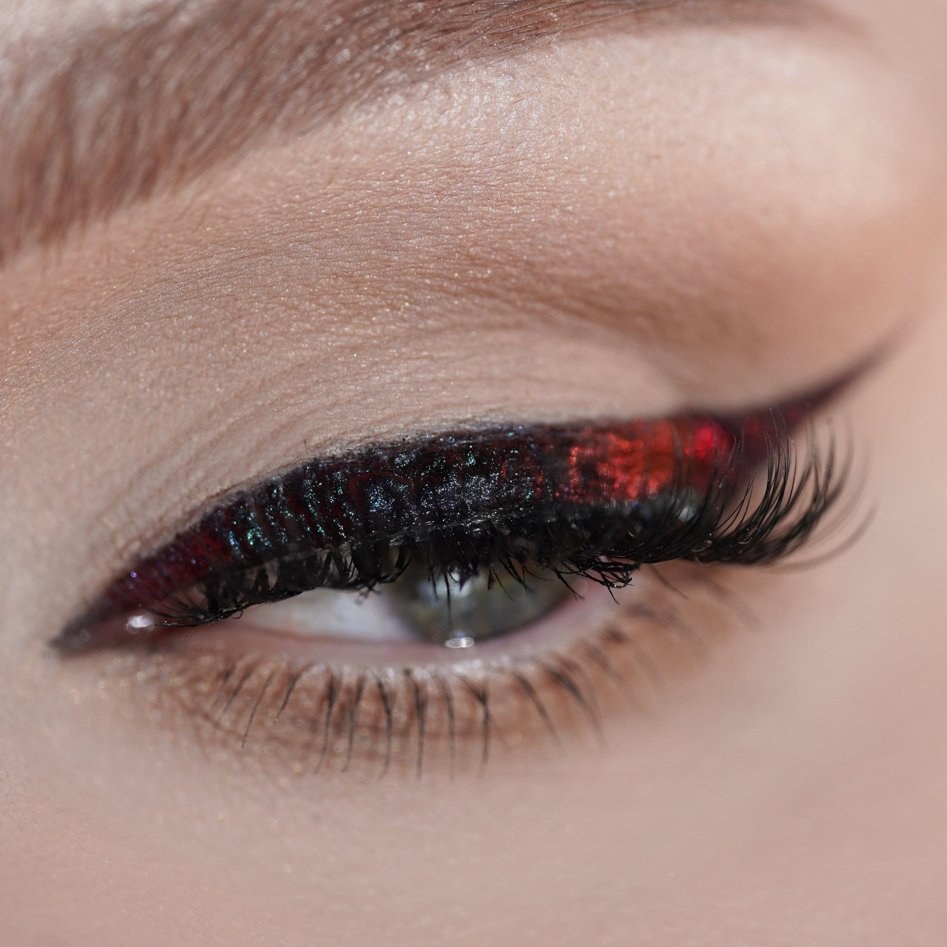 Introducing "Dark Flame -Eye Pallet Shimmer," a striking multichrome eyeshadow pigment that seamlessly shifts from an intense, deep black, like the shadows of a moonless night, to a fiery, smoldering red, reminiscent of embers glowing in the dark. This bold transformation captures the essence of fire and shadow, adding an edge to your look that's both intense and alluring. With "Dark Flame," your eyes will tell a story of raw power and untamed beauty.