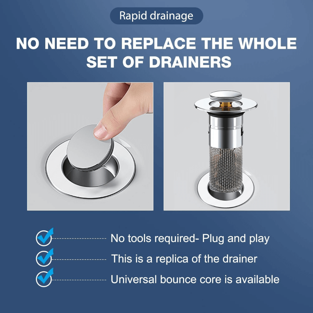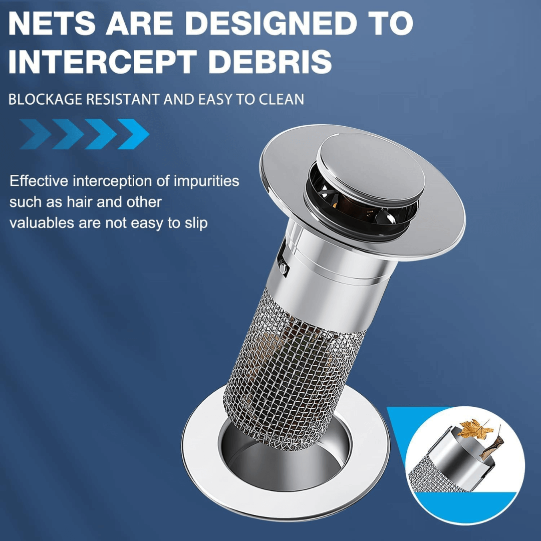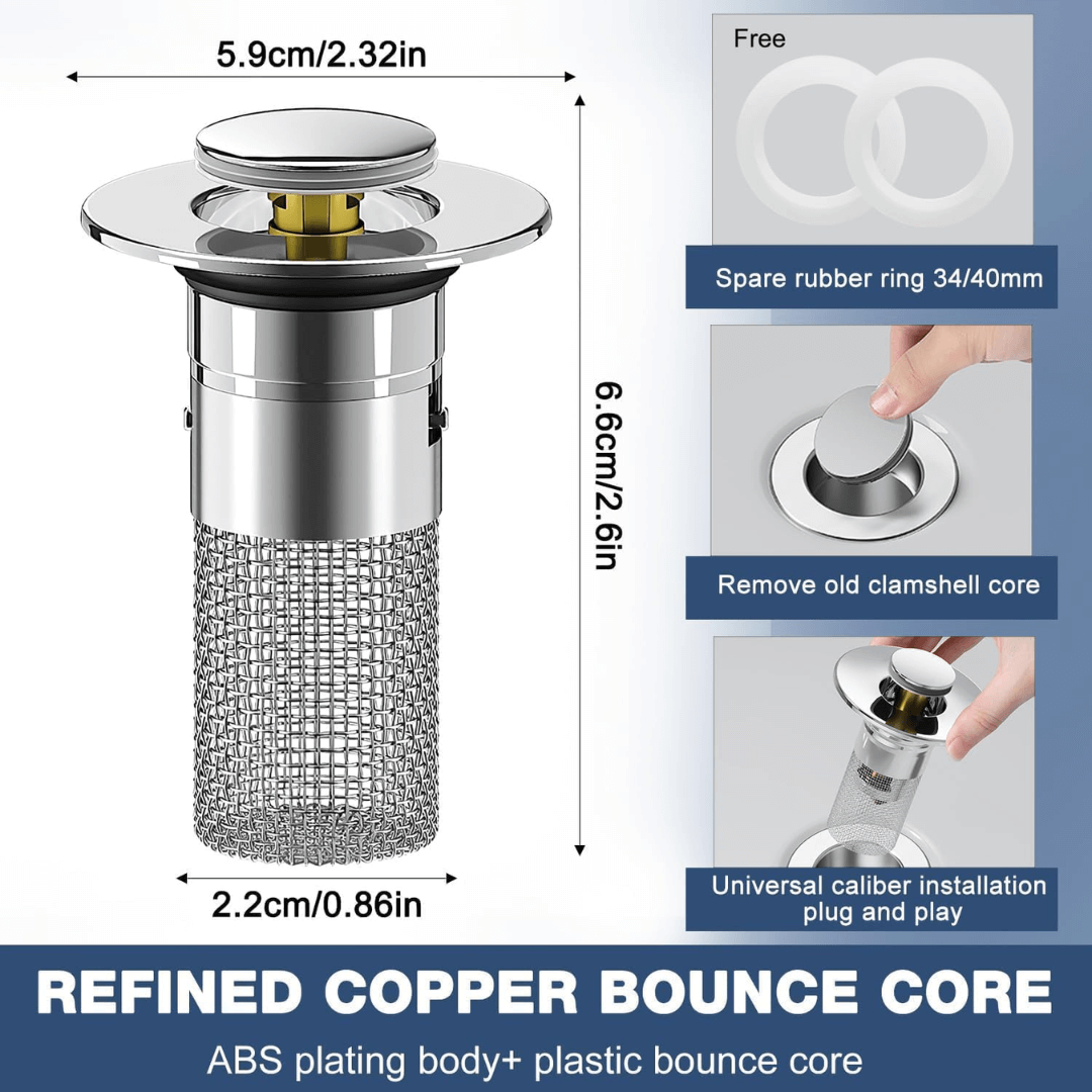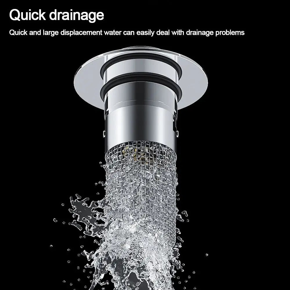 New design: Subverts traditional and inconvenient drainage methods (such as basic plugs with a chain)! You can switch between the two modes, plug (water storage) and filter (water drainage), just by lightly pressing the top cover.