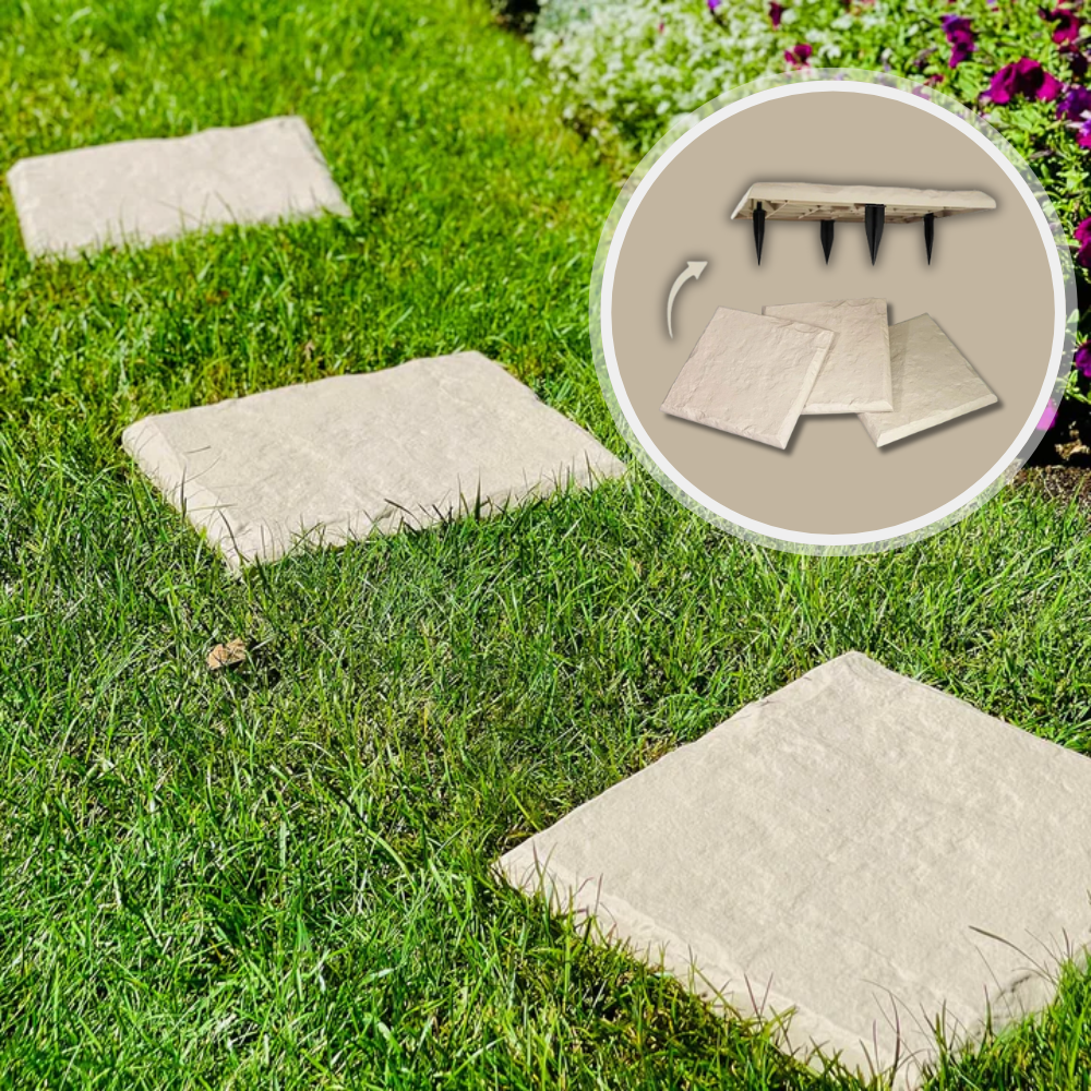 • 15.5” INNOVATIVE DESIGN - This lightweight innovative design measures 15.5" x 15.5” and features four ground stakes that attach to the bottom of each stepping stone. Each ground stake measures 4.25” long and 1.25” wide and when installed properly they provide extra stability and help to prevent movement.