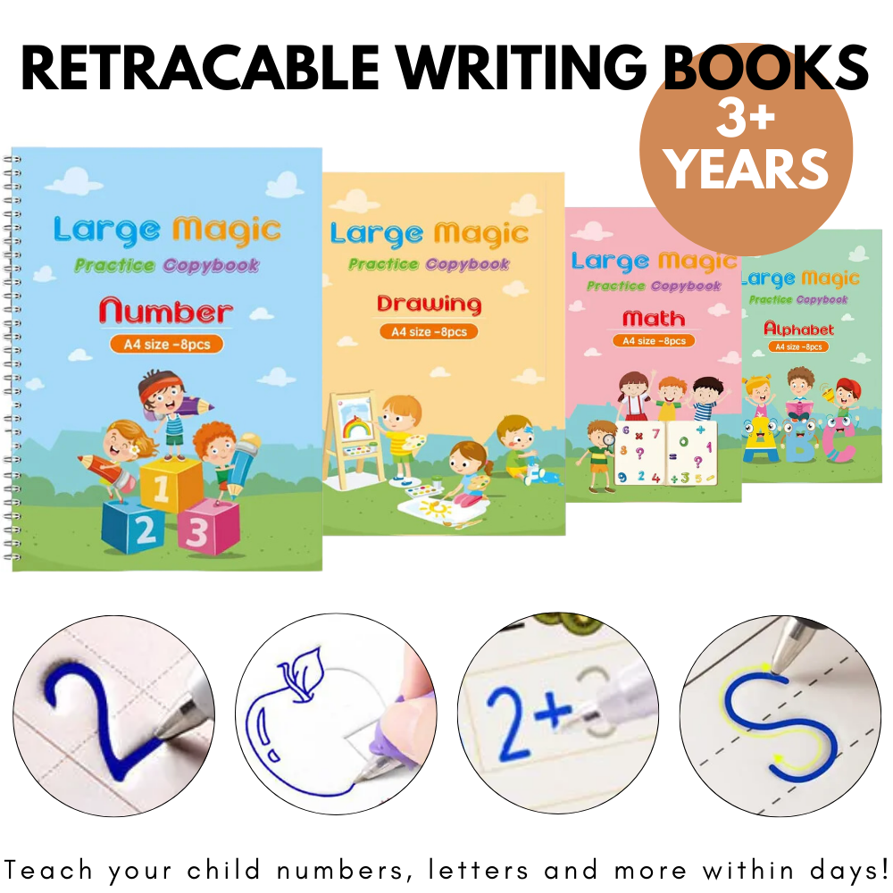 The set consists of 4 books, covering numbers, letters, drawing n and maths. A great pre-school exercise to speed up the learning process of writing.